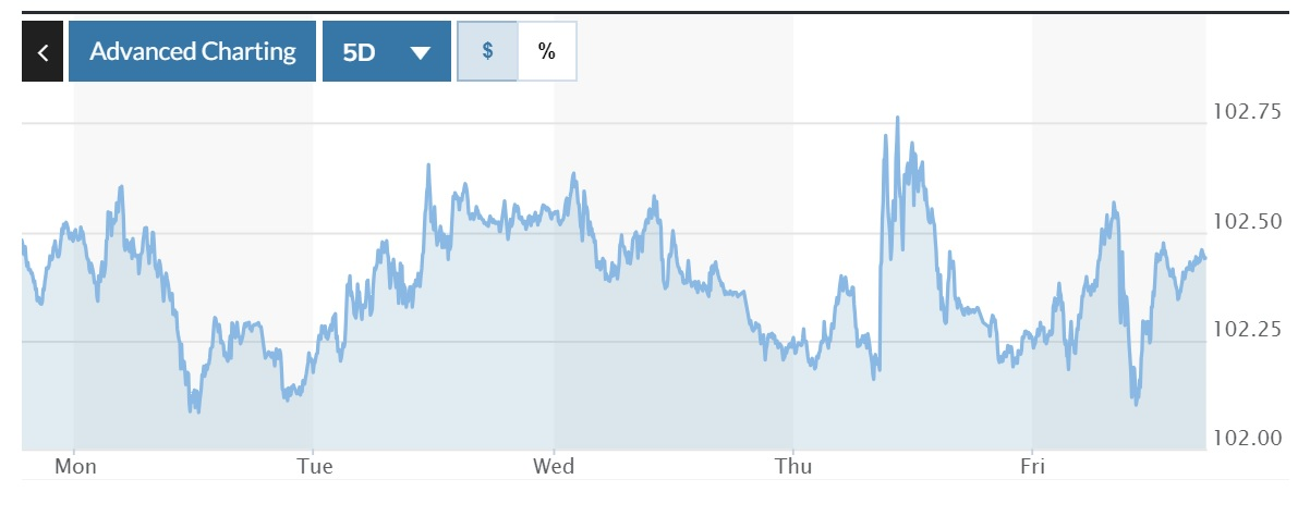 Chỉ số USD Index (DXY), đo lường biến động đồng bạc xanh với 6 đồng tiền chủ chốt đứng ở mức 102,44.