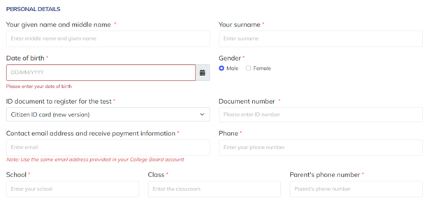 All personal information you filled in your College Board account, including your name, email address, and date of birth, must matches the information you registered on the IIG website as well as your ID.