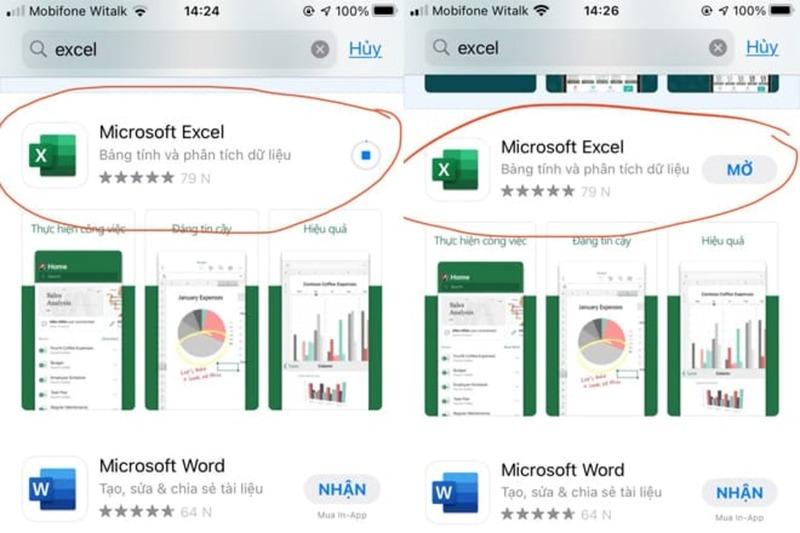 - Tải trên Iphone: Đầu tiên bạn vào App Store rồi nhập từ khóa excel và tiến hành tải về. Sau khi đã cài đặt xong hãy chọn open để bắt đầu sử dụng.