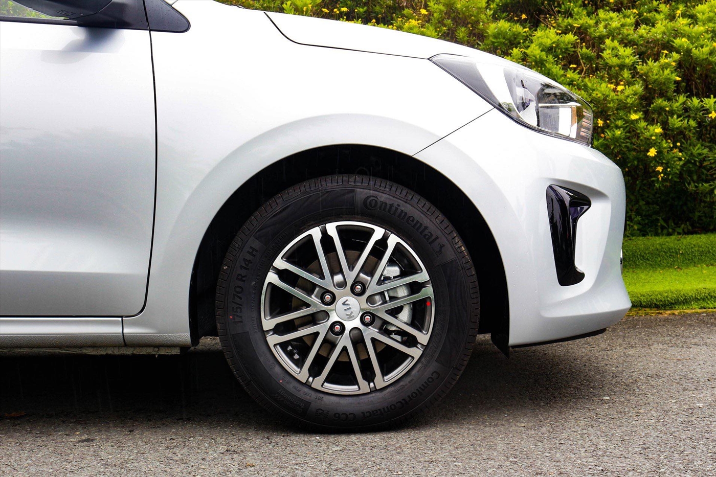 Từ đầu xe quan sát xuống thân xe bạn sẽ ấn tượng với những đường gân dập nổi kéo dài từ vòm bánh trước đến tận đèn hậu góp phần tăng tính khí động học cho xe. Nổi bật trên thân xe chính là bộ vành kích thước 14 inch cực kỳ phù hợp với ngoại hình của xe.