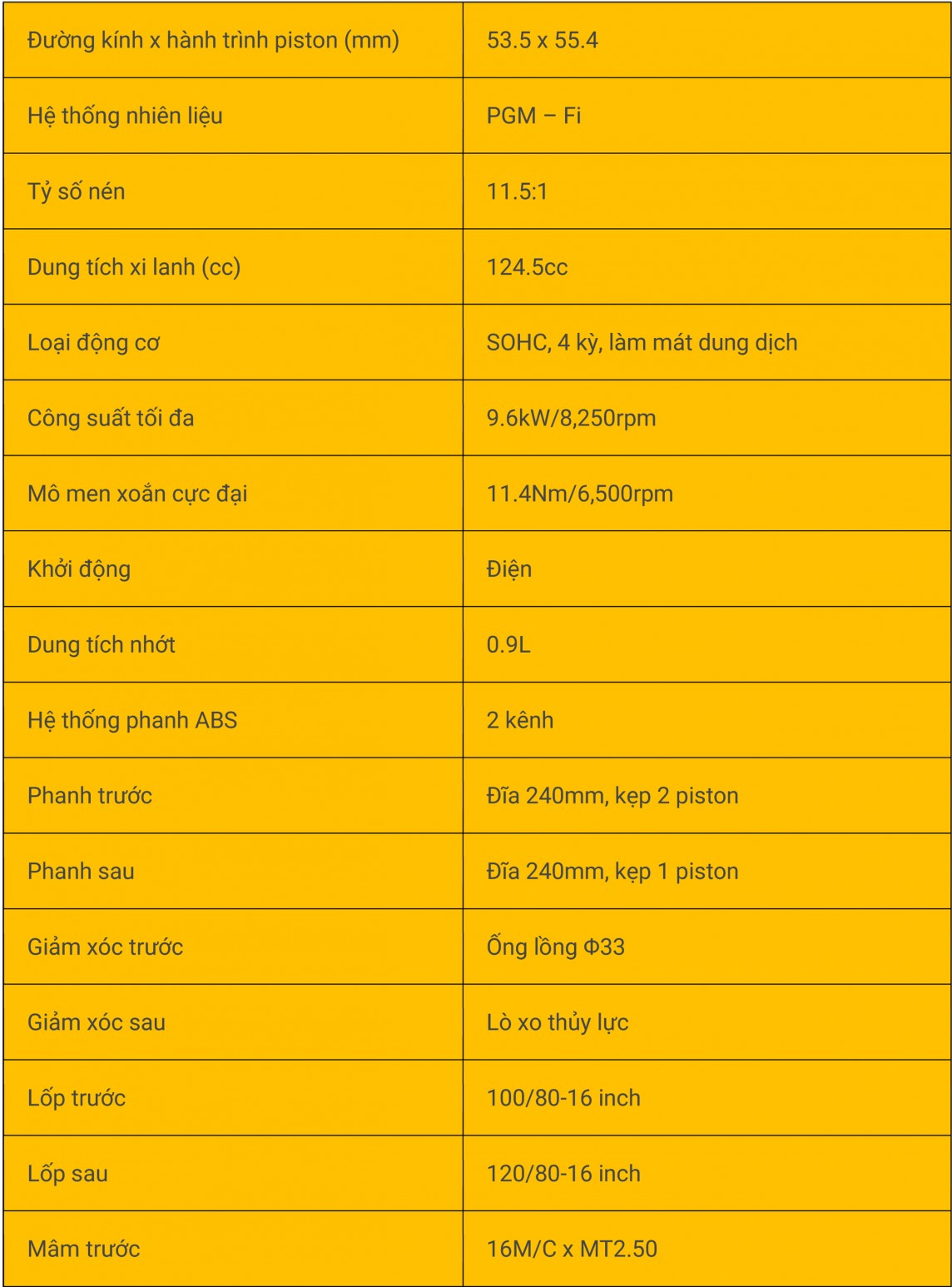 Thông số kỹ thuật Honda SH 125i VetroLưu ý: Thông tin trong bài chỉ mang tính tham khảo!
